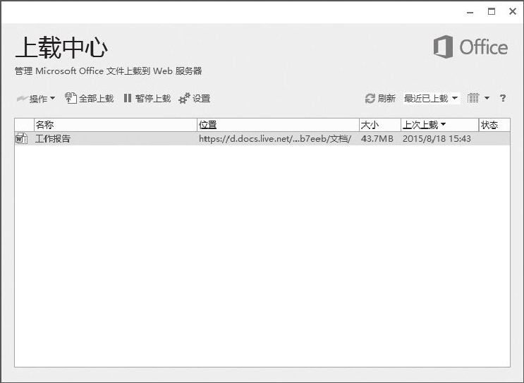 第4步 在任务栏单击【上载中心】图标,在打开的【上载中心】窗口中即可看到上传的文件。