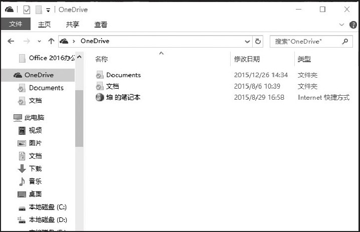 第1步 在【此电脑】窗口中选择【OneDrive】选项,或者在任务栏的【OneDrive】图标上单击鼠标右键,在弹出的快捷菜单中选择【打开你的OneDrive文件夹】选项,都可以打开【OneDrive】窗口。