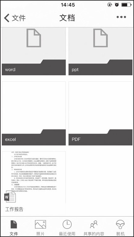 第2步 单击“工作报告.docx”文档,即可将其文件下载至手机。