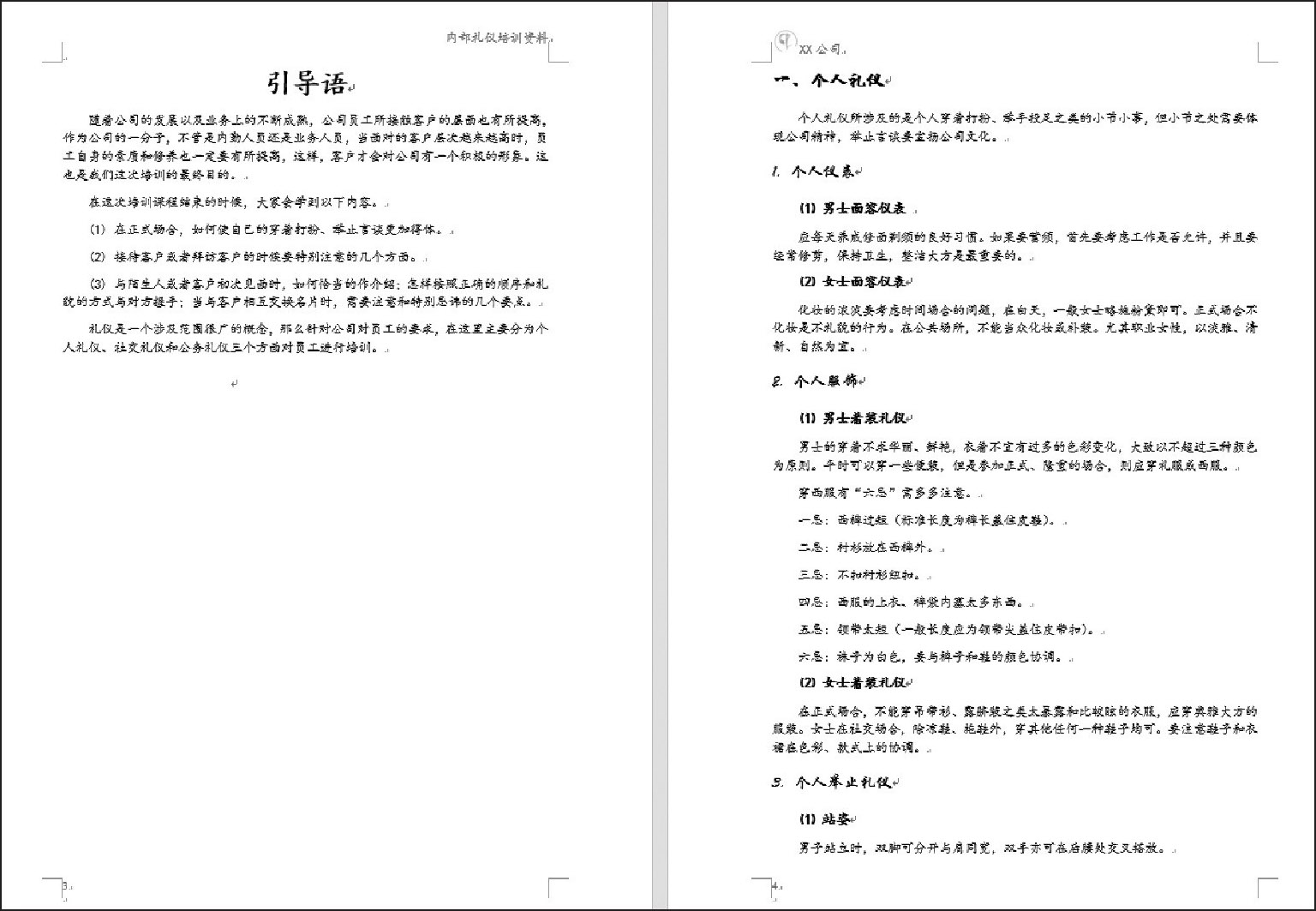 人力资源管理是一项系统又复杂的组织工作。使用Office 2016系列应用组件可以帮助人力资源管理者轻松、快速地完成各种文档、数据报表及幻灯片的制作。如可以使用Word 2016制作各类规章制度、招聘启示、工作报告、培训资料等;使用Excel 2016制作绩效考核表、工资表、员工基本信息表、员工入职记录表等;使用PowerPoint 2016制作公司培训PPT、述职报告PPT、招聘简章PPT等。下图所示为使用Word 2016制作的公司培训资料文档。