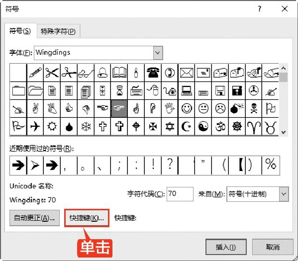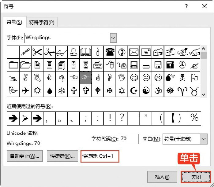 第5步 返回至【符号】对话框,即可看到设置的快捷键,单击【关闭】按钮。
