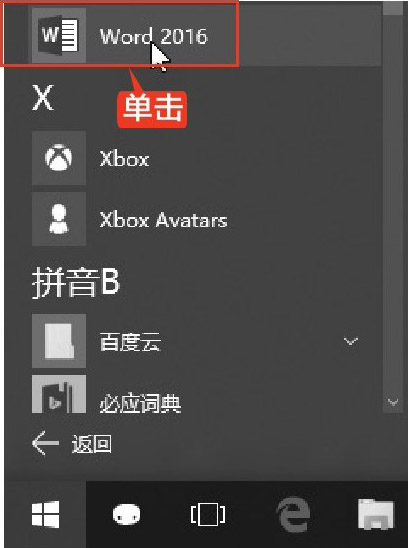 第1步 单击【开始】→【所有程序】→【Word 2016】命令。