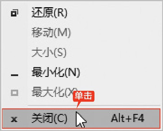 ②在文档标题栏上单击鼠标右键,在弹出的控制菜单中选择【关闭】菜单命令。