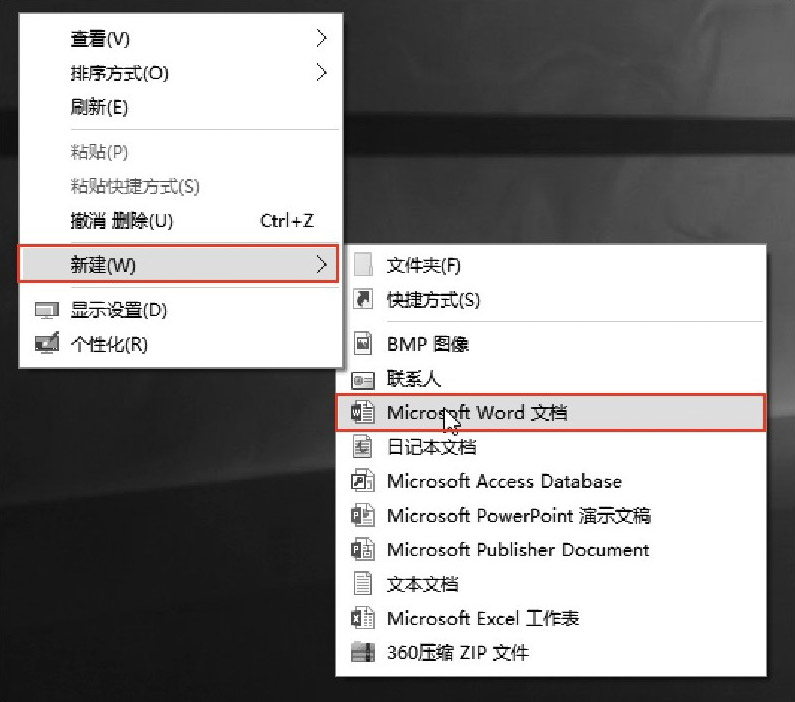 除了使用正常的方法启动Word 2016外,还可以在Windows桌面或文件夹的空白处单击鼠标右键,在弹出的快捷菜单中选择【新建】→【Microsoft Word文档】命令。执行该命令后即可创建一个Word文档,用户可以直接重新命名该新建文档。双击该新建文档,Word 2016就会打开这篇新建的空白文档。