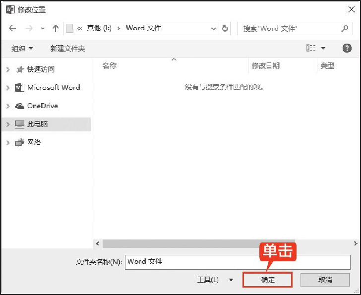 第4步 打开【修改位置】对话框,选择文档要默认保存的位置,单击【确定】按钮。