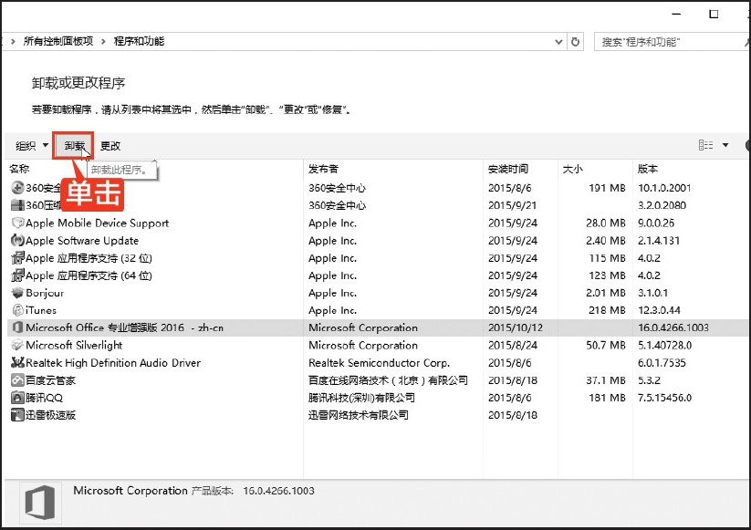 如果使用Office 2016的过程中程序出现问题,可以修复Office 2016,不需要使用时可以将其卸载。