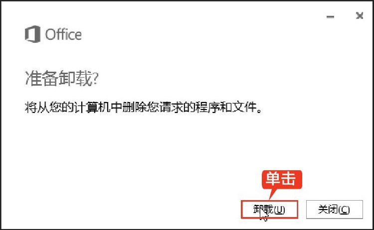第2步 在弹出的对话框中单击【卸载】按钮即可开始卸载Office 2016。