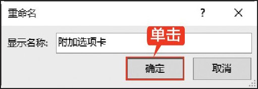 在【显示名称】文本框中输入“附加选项卡”字样,单击【确定】按钮。