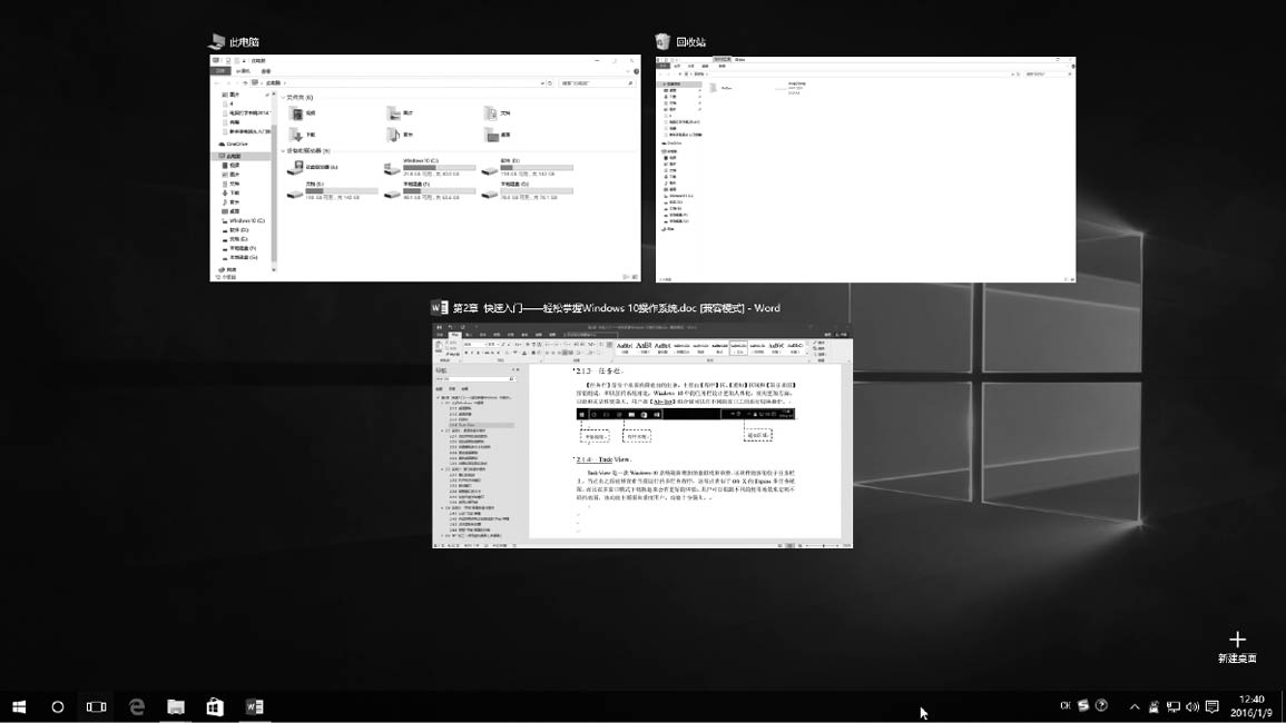 Task View(任务视图)是一款Windows 10系统最新增加的虚拟桌面软件,该软件的按钮位于任务栏上,当单击之后能够查看当前运行的多任务程序,这有点类似于OS X的Expose多任务视图。而且在多窗口模式下切换起来会有更好的体验,用户可以根据不同的使用场景来定制不同的桌面,该功能主要面向重度用户,功能十分强大。如下图所示为Task View的视图界面。