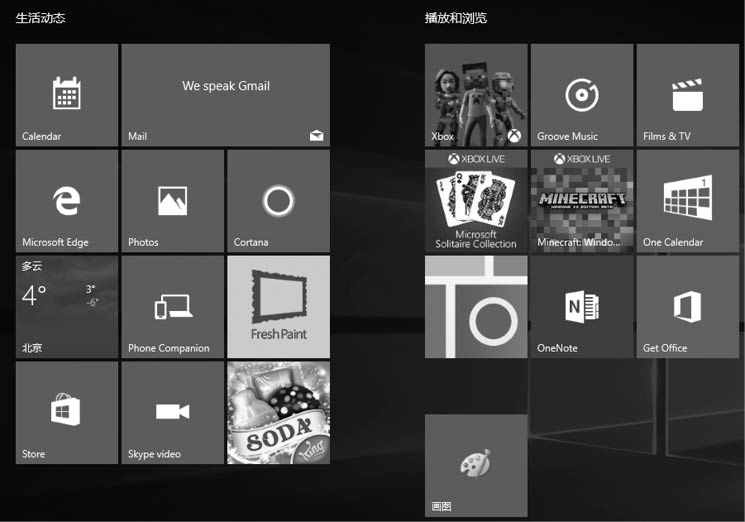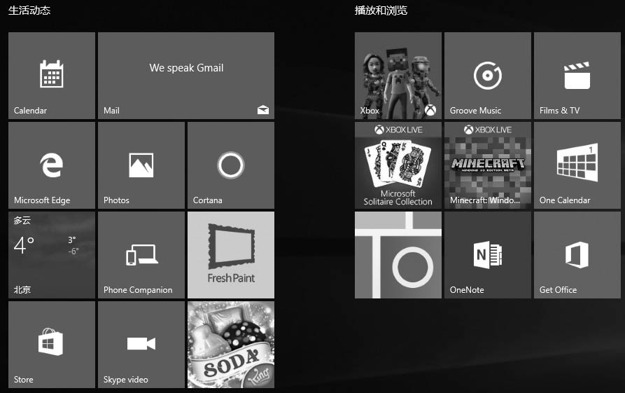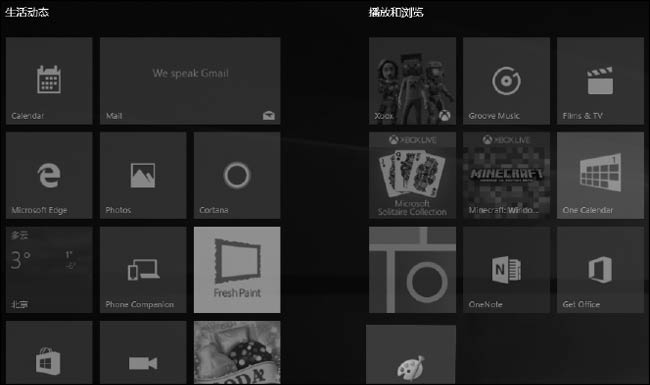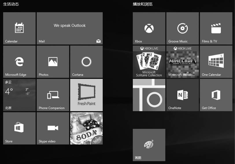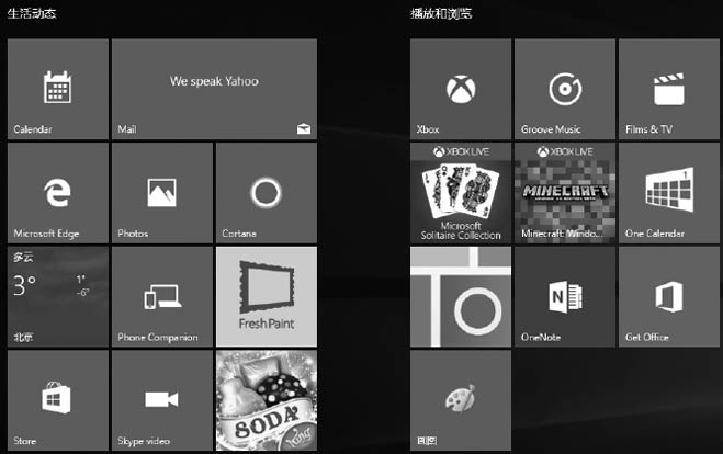Windows10的磁贴,有图片有文字,还是动态的,应用程序有更新的时候可以通过这些磁贴直接反映出来,而无须运行它们。