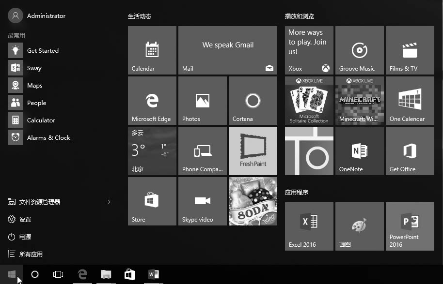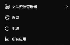 在【固定程序】列表中包含了【所有应用】按钮、【电源】按钮、【设置】按钮和【文件资源管理器】按钮选项。