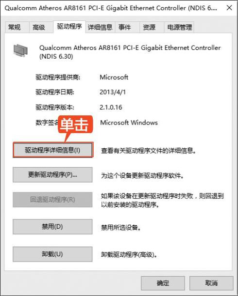 第5步 选择【驱动程序】选项卡,用户可以查看驱动程序的提供商、日期、版本和签名程序等信息,单击【驱动程序详细信息】按钮。