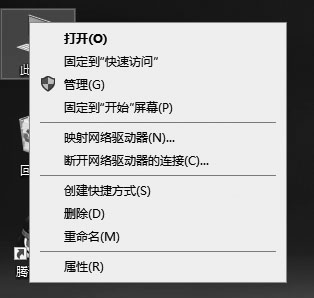 【右击】:指快速按下并释放鼠标右键。右击一般用于打开一个与操作相关的快捷菜单。如下图所示为右击【此电脑】图标的快捷菜单。