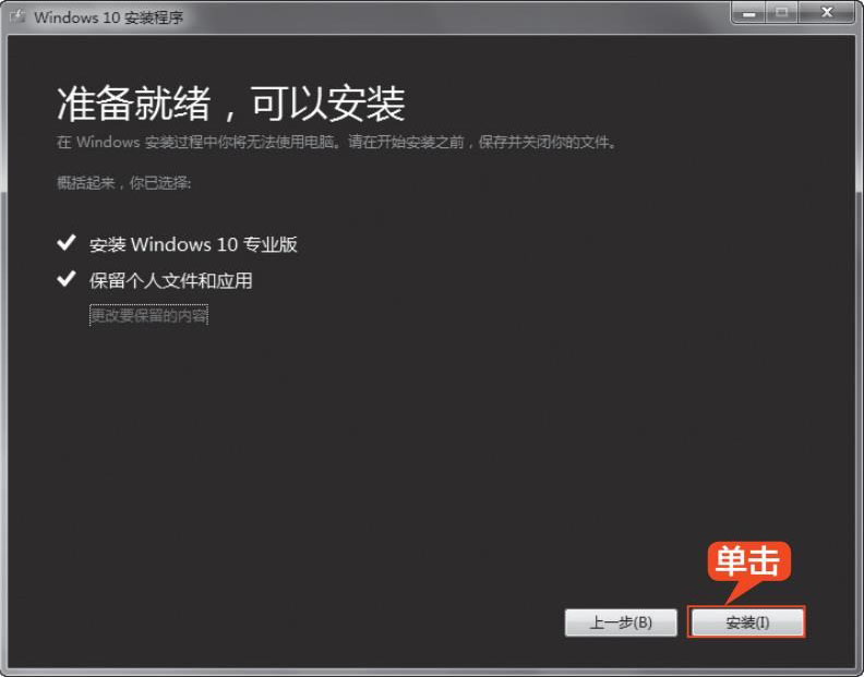 第5步 下载Windows 10安装包完成后,即可进行安装,安装方法与1.2.3小节相同,这里不再赘述。