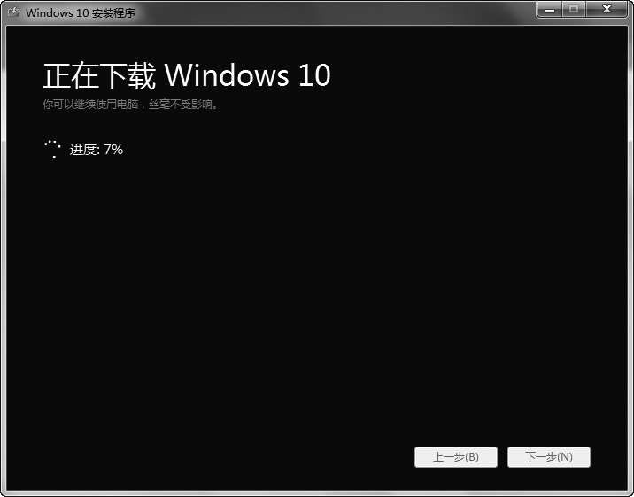 第4步 准备完成即可进入【Windows 10安装程序】界面,并自动下载Windows 10安装包,并显示下载进度。