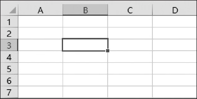 默认情况下,Excel用列序号字母和行序号数字来表示一个单元格的位置,称为单元格地址。在工作表中,每个单元格都有其固定的地址,一个地址也只表示一个单元格。如B3就表示位于B列与第3行交汇处的单元格。见下表。