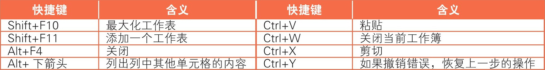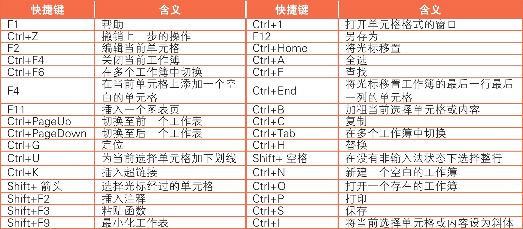 要想提高工作效率,使用快捷键是一个非常有效的方法,Excel常用的快捷键见下表。