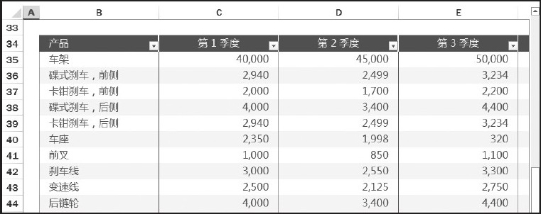 Excel可以用于统计销售人员的销售数据,如销售统计表、产品销售清单等。下图为汽车销售公司的季度销售报表。
