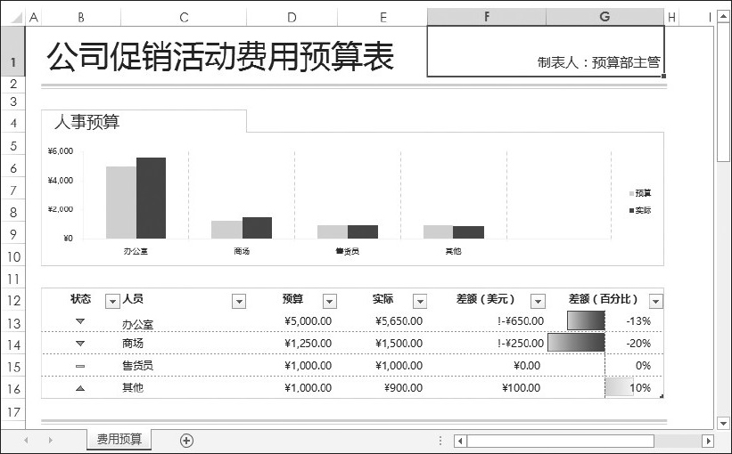 预算部门中的办公人员可以在Excel中创建任何类型的预算表,如市场预算计划、活动预算或退休预算等,下图为某个公司促销活动费用预算表。