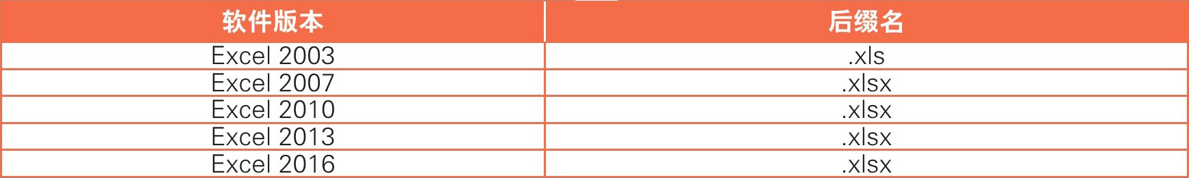 目前,Excel软件的版本有多种,常用的有Excel 2003、Excel 2007、Excel 2010、Excel 2013和Excel 2016。不同的版本,默认的文件后缀名是有区别的,见下表。