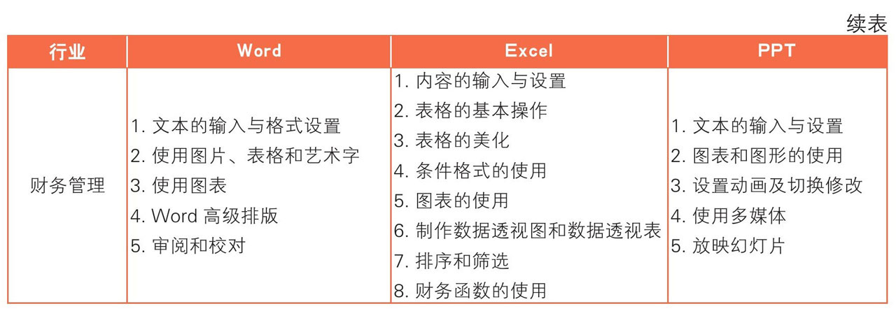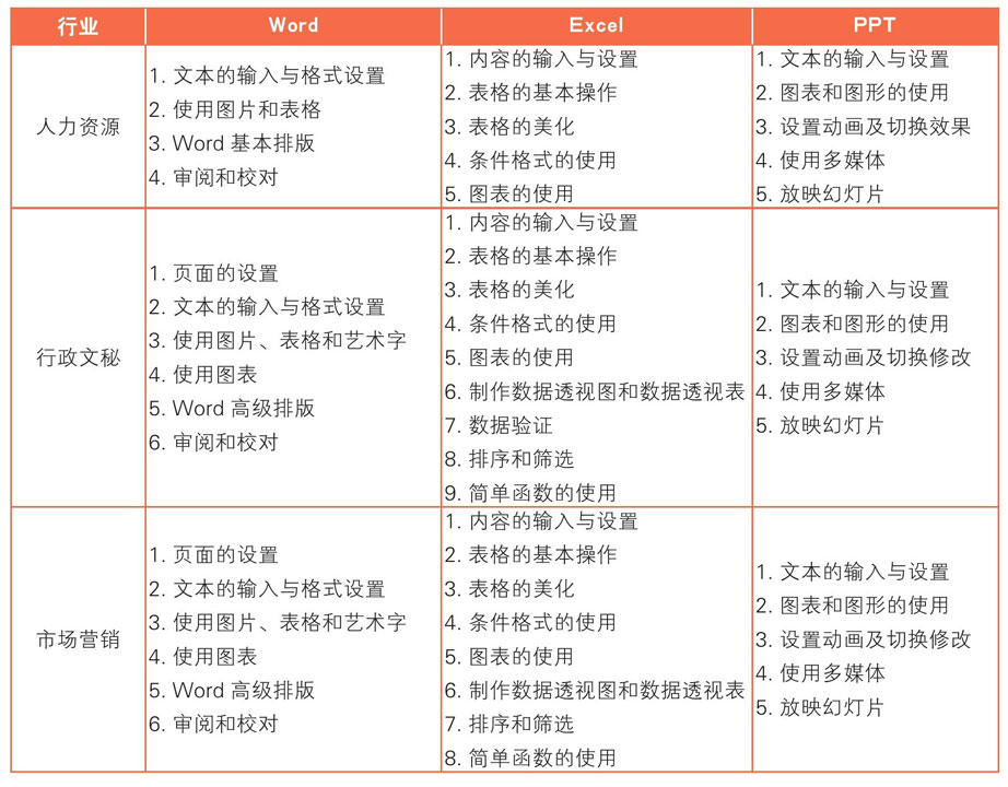 不同行业的从业人员对Word/Excel/PPT技能的要求不同,下面就以人力资源、行政文秘、市场营销和财务管理等行业为例介绍不同行业必备的Word、Excel和PPT技能。 ui3SUSKeiAYUd4OI62oWwXc3V6nX8ITNMdQtMMz4qDPgUyjnmcr9O8PnPAs2RiZe