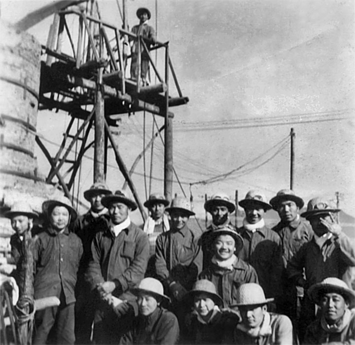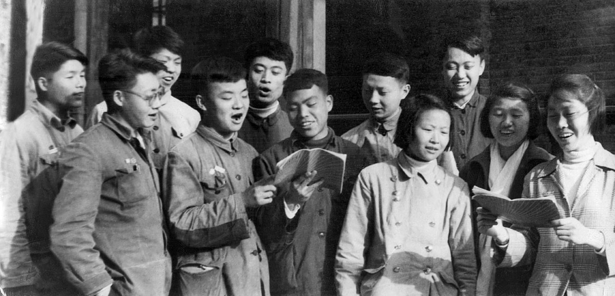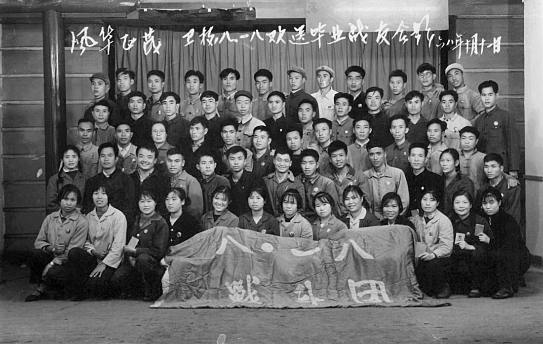 大学生活:在密云大炼钢铁,担任炉前工(二排蹲立者)