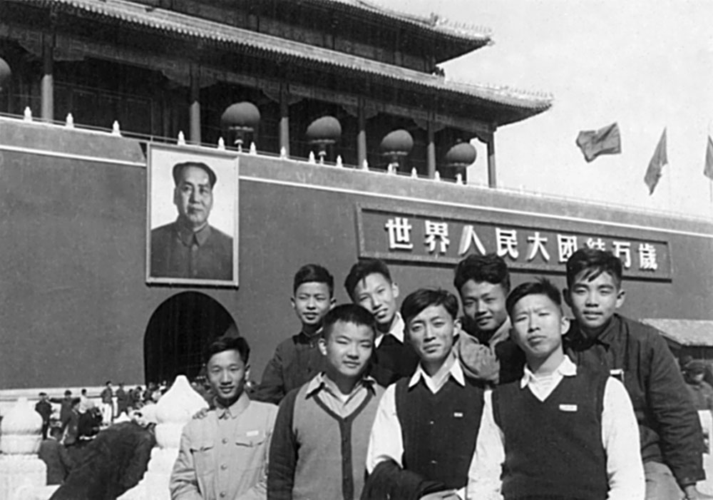1956年上大学时与在北京读书的中学同学在天安门前合影(前排左二)