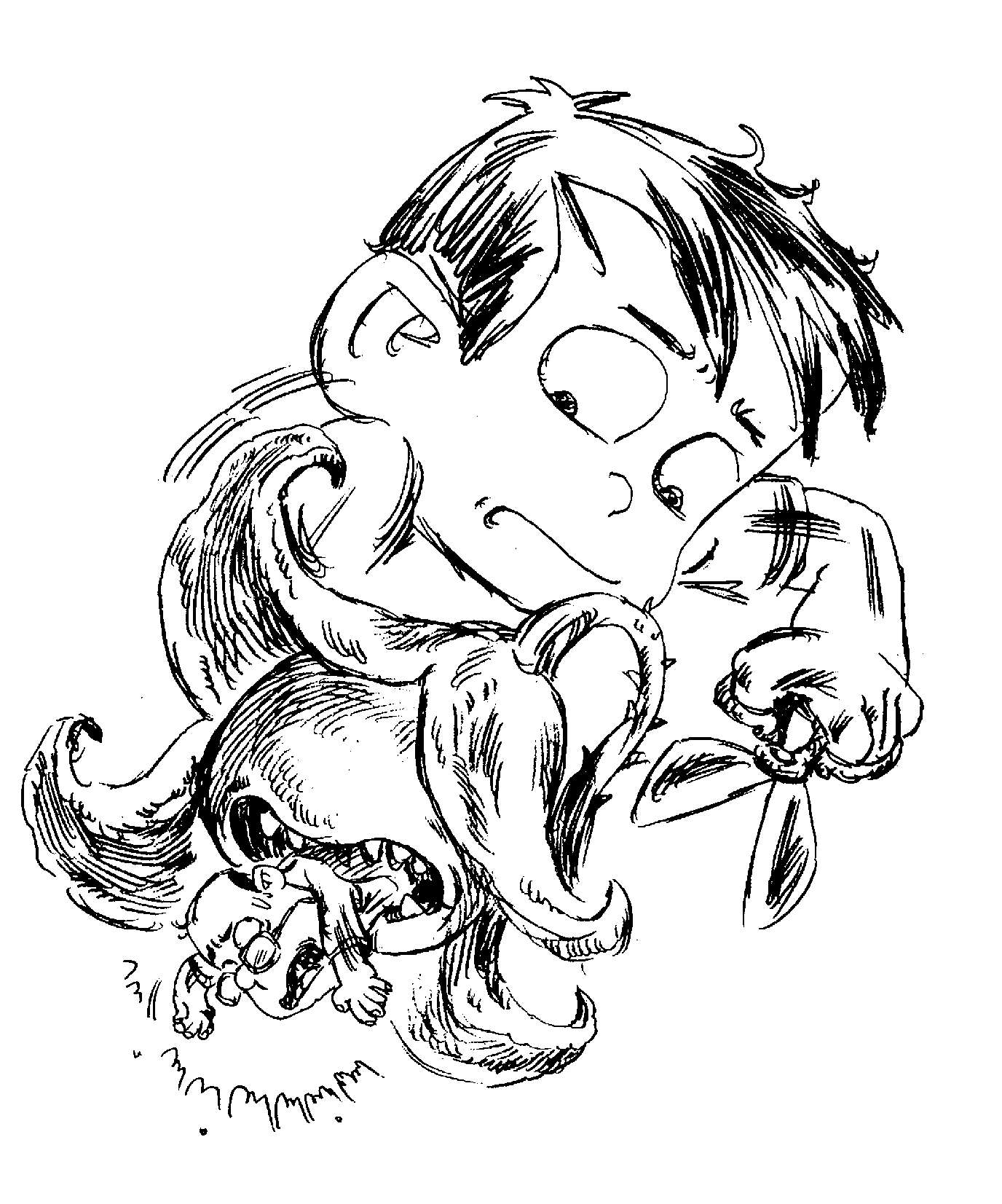 就在这时,食人花突然“大笑”起来,“笑”得整株花都在抖动。它的五片花瓣也随之张开,爸爸从花里掉了下来。