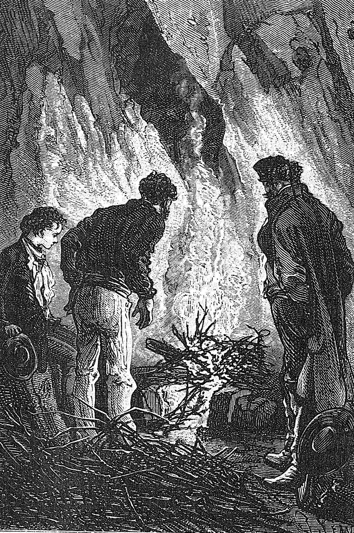 “我可真糊涂!何止是糊涂!”他望着哈伯特说,“这火柴盒大概从我兜里掉出去了。我把它弄丢啦!可是你,哈伯特,难道你就什么都没有,没有火镰或任何可以用来取火的东西吗?”