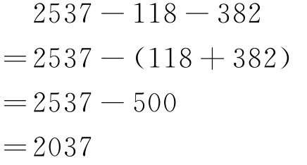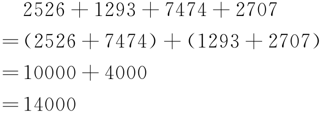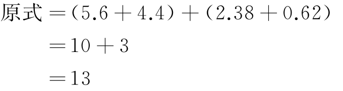 ①加法“凑整”。利用加法的交换律、结合律“凑整”。如: