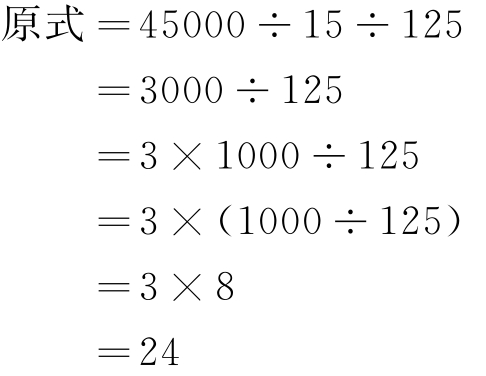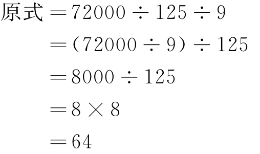 另外,在连除运算中,还可以利用添括号的方法来进行速算和巧算。