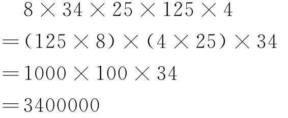 ③乘法“凑整”。利用乘法交换律、结合律、分配律“凑整”。如: