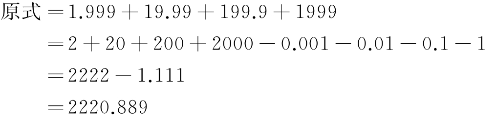 因为小数计算起来容易出错。刚好1999接近整千数2000,其余各加数看作与它接近的容易计算的整数。再把多加的那部分减去。所以: