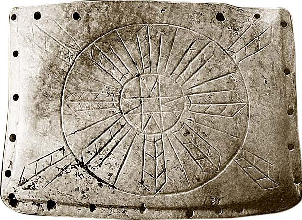 这块出土于江淮地区的玉刻圆形长方片,圆内圆外的图形数都和八有关,可能代表当时的八卦历法,是远古人类所画出的八卦雏形图表。