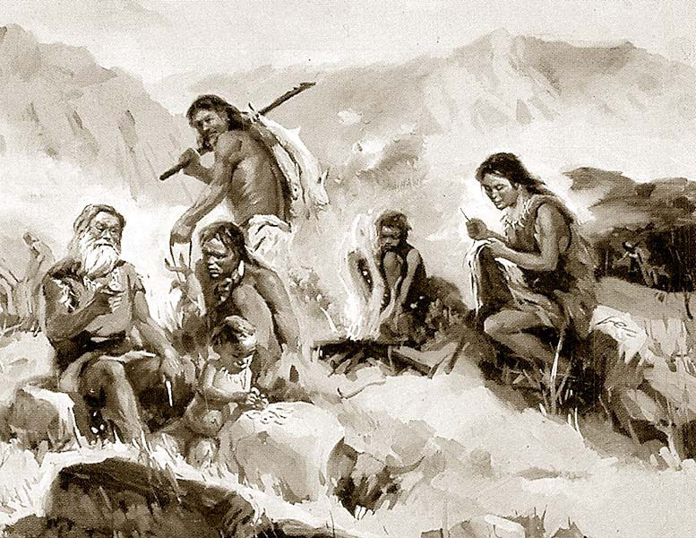当初我们人类的祖先手里拿着一块石头来到树下生活时,不过是其他凶猛肉食动物的一种美味食物。可是人类并没有消亡,反而在百万年后成为这个地球的统治者,一些曾经以人类为食物的凶猛动物,如今已变得弱小而可爱,成为人类的一种宠物(如猫和狗)。那么究竟是什么使人类发生了如此翻天覆地的变化呢?其实只有两个字——智慧。来到树下,走出森林的早期猿人,手里拿着一块石头或手里拿着一截木棍,开始了战胜自然、求得生存的新旅程。可是这点装备,是无法与剑齿虎、鬣狗、狼群及狮子群抗衡的,人类无法逃脱被吃掉的命运。于是,人类只得选择另一种生存之道:择地而居,远离凶猛的野兽,到食草动物多的环境中去求发展,到更安全的自然环境中去求生存。于是一种生存的智慧,便在早期猿人中逐渐形成。并且,这种智慧得到了很好的继承与发展。在血缘家族式的原始群中,年长的猿人以口传身教的方式,将自己从上一代得到的经验及自己的经验相结合,然后传给下一代年轻的猿人。而一些聪明的猿人则在前辈的基础上进行了较大创新,比如发明了石斧、标枪等更好的武器,发明了人工取火及创新了更好的生存方式,于是早期猿人过渡到了晚期猿人阶段,接着进入早期智人阶段——人类便开始进入一种流浪式的生活,这种生活方式也称游猎生活。早期智人追逐着猎群向全球各地迁移,他们一方面逃避着猛兽的袭击,另一方面积极寻找着猎物和能够采集到的植物性食物。武器的发展使人类生存更加容易,各种猛兽已不再是人类的最大威胁,人们此时可以用标枪战胜巨大的猛犸象,鬣狗也成为人们捕猎的对象。而此时人类仍然摆脱不了自然灾害对生存的威胁,不过通过前辈的各种经验,也懂得了一些防范措施。比如通过地震或火山前的征兆及早逃避等。
