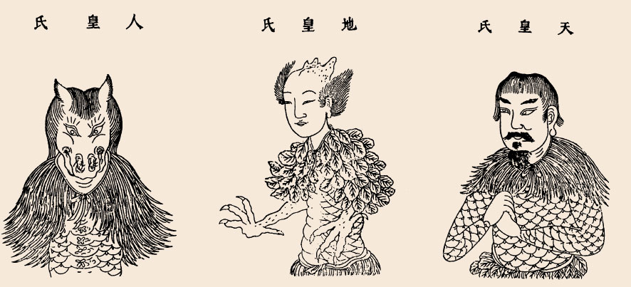 此外,汉朝的纬书中称三皇为天皇、地皇、人皇,是三位天神。后来在道教中又将三皇分初、中、后三组:初三皇具人形;中三皇则人面蛇身或龙身;后三皇中的后天皇人首蛇身,即伏羲;后地皇人首蛇身,即女娲;后人皇牛首人身,即神农。