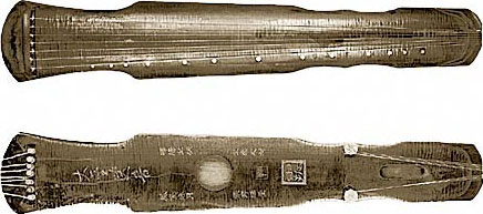 圣人伏羲是个大发明家,除了创造八卦,还发明了陶埙和五弦琴等乐器。此琴为伏羲式,桐木胎,鹿角沙漆灰,金徽玉轸,遍体蛇腹断纹,中间细断纹,额有冰纹断。