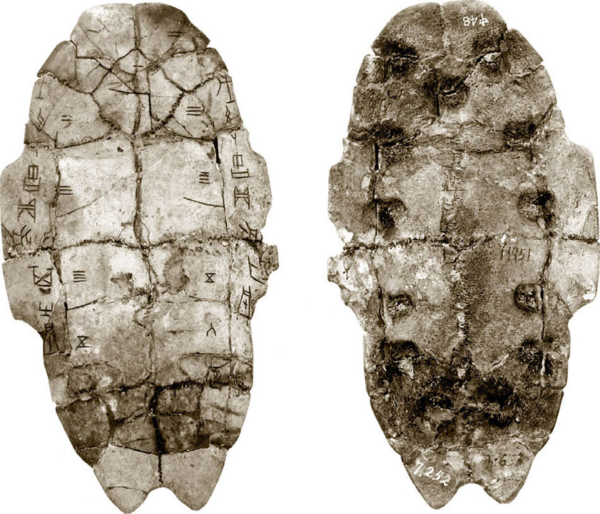 1987年贾湖遗址出土的甲骨文距今有9000年的历史,这说明在伏羲时代已经拥有了文字。遗址中还发现墓主人手持义形器(牙璋)和白龟甲,有八人各有八个龟甲内装小石子,这种现象同样见于大汶口文化和安阳殷墟文化,这说明伏羲文明与殷商文明有着共同的血脉渊源。