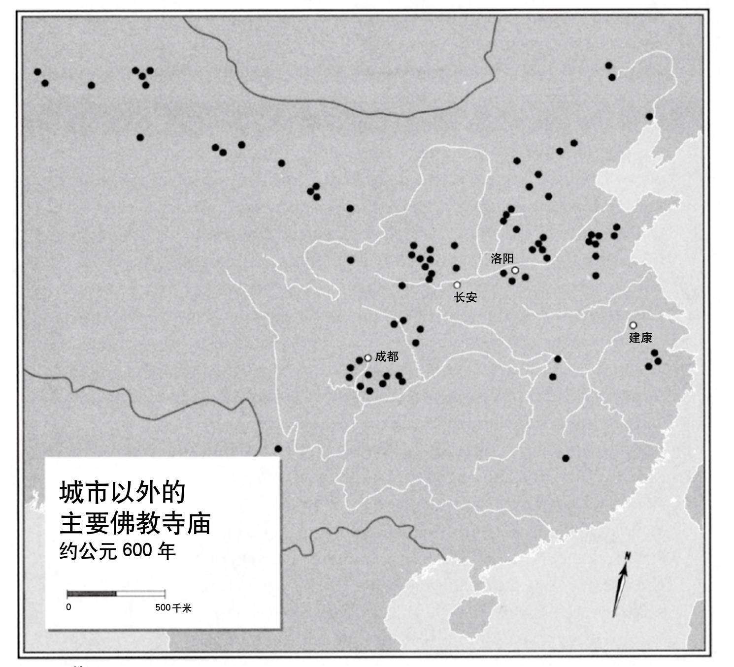 帝国统治者试图通过公开刊行宗教教义和在洛阳与建康修建大量的寺庙,将这些新的信仰体系纳入到帝国体制中。但是他们无法控制那些分散在中国丘陵和山区中、刚刚获得新的精神力量的圣地。(地图1)同样的,诗歌也创造了一个新的文化世界,这也是朝廷所无法掌控的。