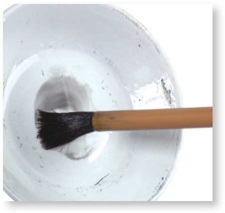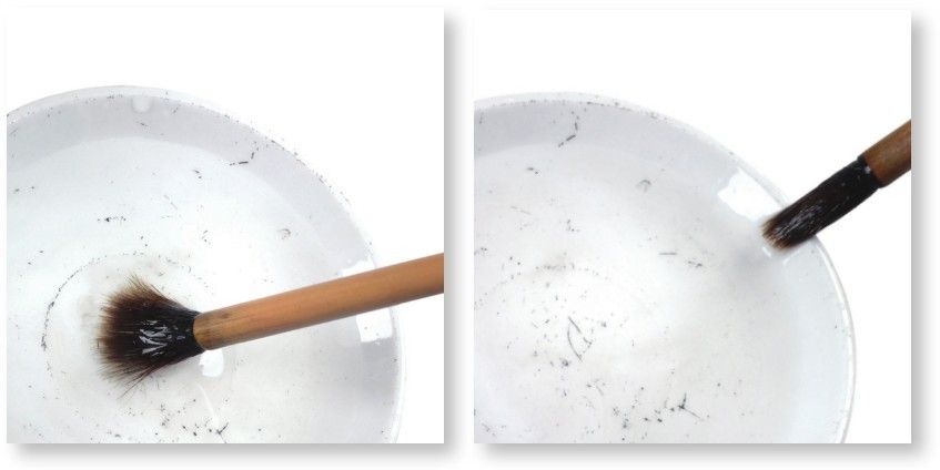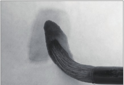 2.淡墨。用笔尖蘸少许墨,在盘中与清水调和,使墨汁浸入笔肚。