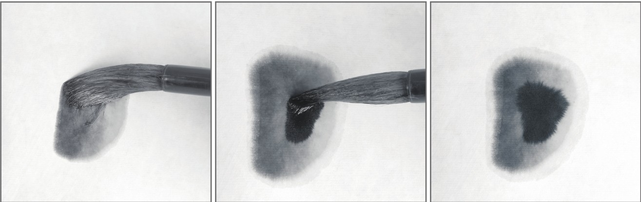 中国画通过墨的干、湿、浓、淡、清来体现物象的远近、凹凸、明暗、阴阳、燥润和滑涩。墨分五色:清、淡、浓、重、焦,而决定这五种墨色的关键是墨中水的比例。本节将详细介绍墨色的调和方法。