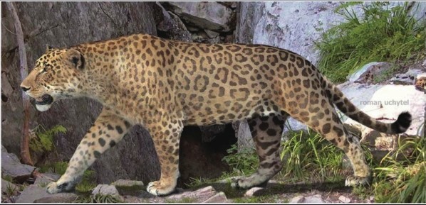 欧美洲狮复原图,其外形与今天的美洲豹有几分相像。