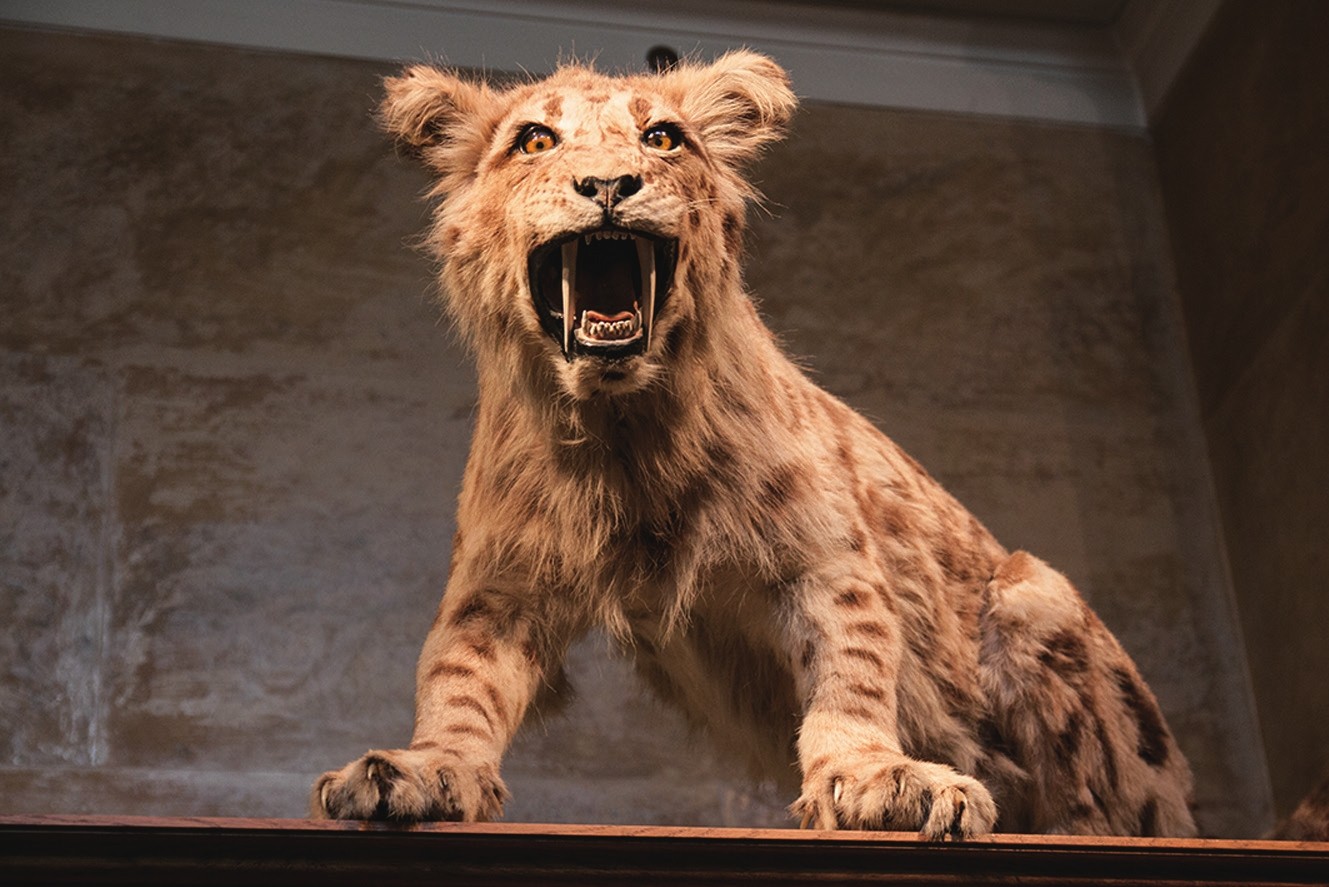 博物馆中的刀齿巨颏虎复原模型,这个造型缺乏气势。