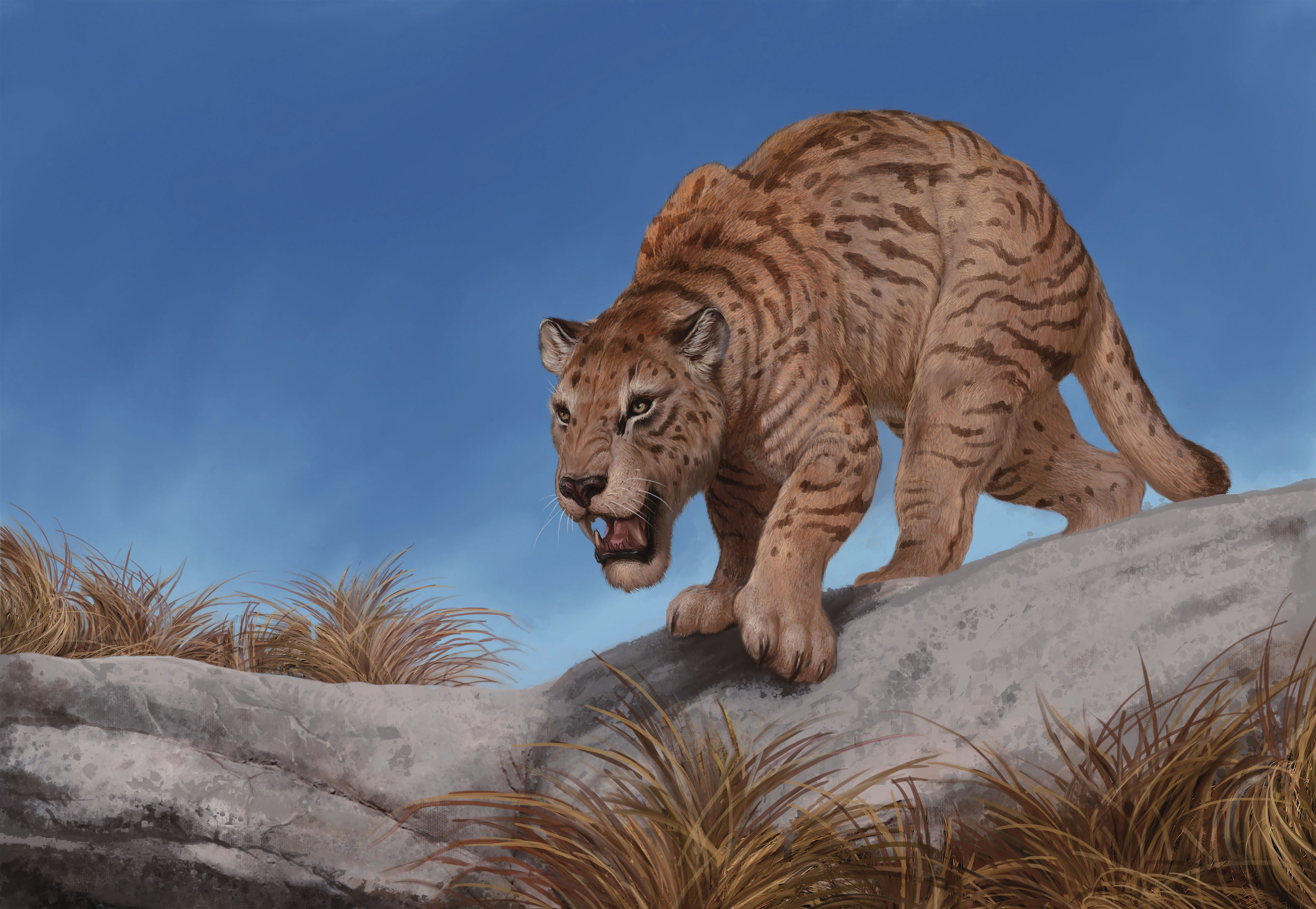 在北美草原上,锯齿虎不得不与更加强大的短面熊、拟狮分享同一片猎场,在亚欧大陆上的锯齿虎也面临着越来越大的挑战。