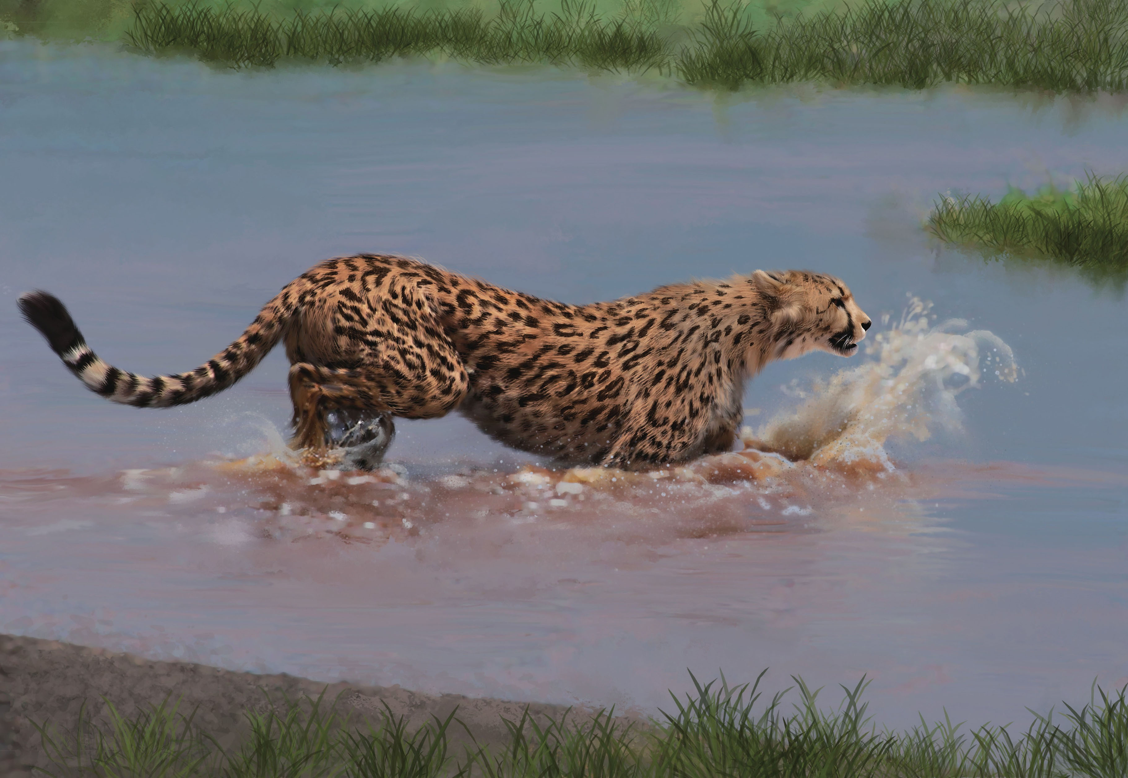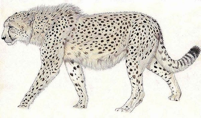 巨西瓦猎豹复原图。国外许多古生物学家认为,它很可能和今天的猎豹是一个属。