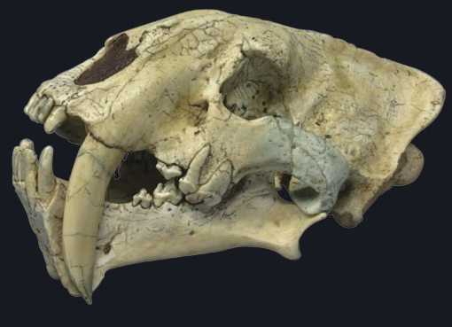 尽管巨颏虎没能挺到冰河时代的最后,但进入新大陆的一支巨颏虎却繁衍出了更强悍的子孙,延续了它们的血脉,这就是剑齿虎家族中名气最大、剑齿最发达、在更新世美洲扮演重要角色的刃齿虎。