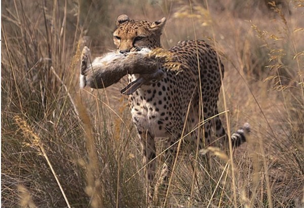 除了瞪羚和大中型羚羊幼仔,今天的非洲猎豹还会经常捕捉野兔、珍珠鸡等小型动物,这就减少了与其他猛兽的食物竞争。