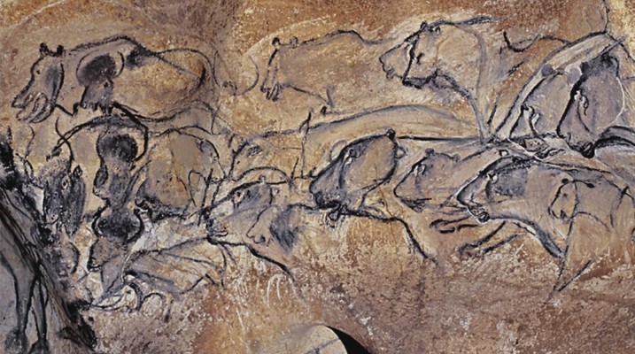 史前岩画中的洞狮形象,可以看到它们在追逐其他食草动物。