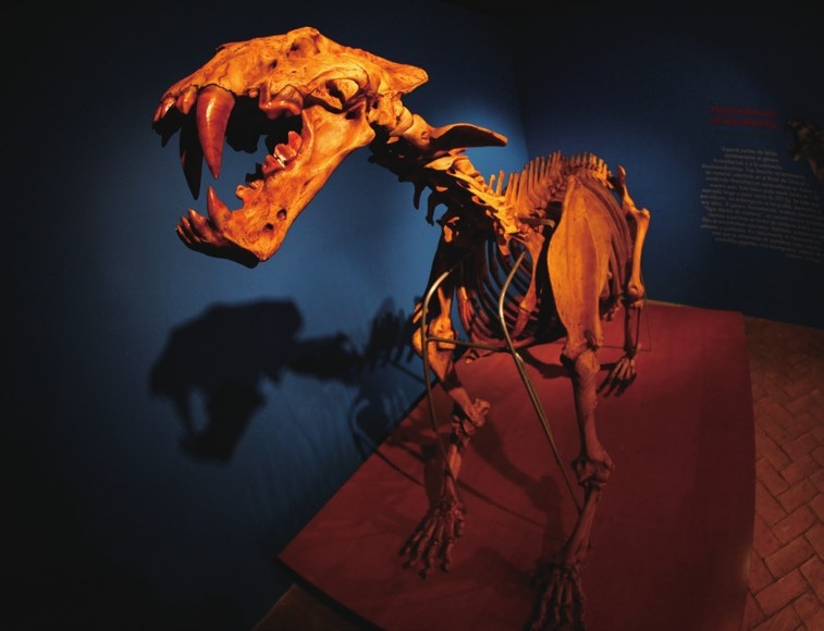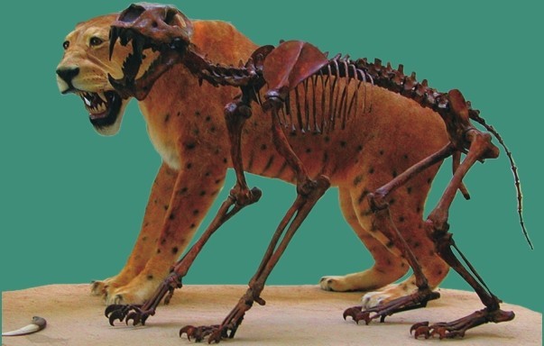 与其他剑齿虎类相比,锯齿虎的骨骼显得轻灵,但仍不失为强健的大型猛兽。