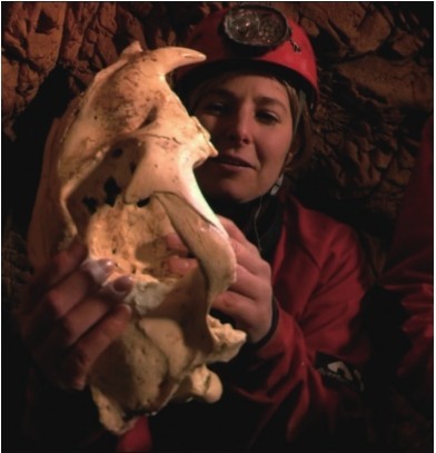 BBC纪录片《冰河巨兽》中,主持人跟随研究人员进入洞穴深处,发现了洞狮的巨大头骨。